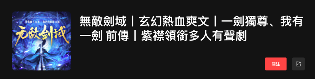 而健身時,會選擇一些小說來聽,其實發現有一些中國創作的內容還蠻有趣的,像是最近健身的時候就在聽「無敵劍域丨玄幻熱血爽文丨一劍獨尊、我有一劍 前傳丨紫襟領銜多人有聲劇」,劇情很有趣,也是健身時可以聽聽的,這裡也來簡單分享一下它的內容。